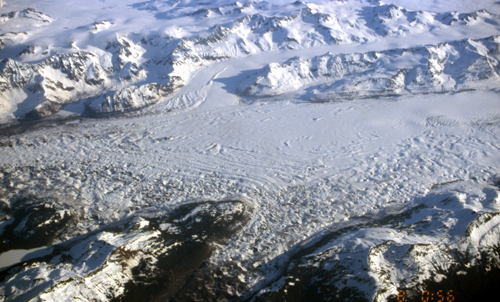 @ŽÊ^’†‰›‚ÍCƒAƒ‰ƒXƒJ“ì•”ŠCŠÝ‹ß‚‚ÌMartin River•X‰Í‚Ìæ’[•t‹ß‚Å‚ ‚èC•‚ª–ñ7km‚ ‚éD‚±‚Ìã—¬‚É‚ÍSteller•X‰ÍC Berling@•X‰ÍCBagley Ice Field‚Ȃǂª“Œ¼–ñ200km‚ɂ킽‚Á‚ĘA‚È‚é–k•ÄÅ‘å‚Ì•X‰Í’nˆæ‚Å‚ ‚éDŽÊ^ã•û‚ð‰¡Ø‚é’¼ü“I‚È’nŒ`‚ɉˆ‚Á‚ÄCChugach-St.Elias’f‘w‚ª‘–‚éD“ì‚©‚ç–k‚ɓ˂«ã‚°‚é‹‘å‚ÈÕã’f‘wŒQ‚̈ꕔ‚Å‚ ‚èCSt.Elias ŽR‚Ì•W‚‚Í5489m‚Å‚ ‚éD‚±‚±‚Í—²‹N‚Æ•X‰ÍZH‚Ì‚¹‚ß‚¬‡‚¢‚Ìê‚Å‚à‚ ‚éD˜Io‚·‚éŠâ΂ÍC’†¶‘ã‚̉ΎRŠâ‚Æ[¬ŠâD