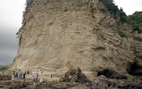 The Kurotaki Unconformity is a famous unconformity which is recognized in the Neogene sedimentary successions in the Boso Peninsula, central Japan, and is traced from west coast to east coast of the peninsula. At the Boranohana Point in Katsuura City, located along the east coast, the Kurotaki Unconformity is easily recognized as the different types of sediments are contacted through this unconformity.