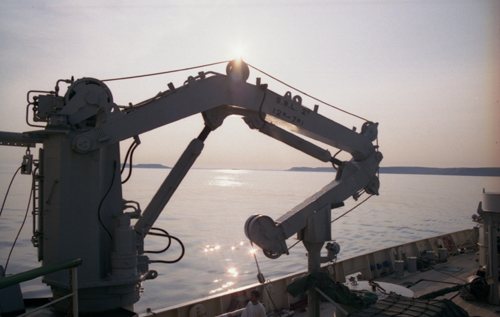 海洋調査には通常,休日はない.しかし,荒天により調査が不可能になることはある.この日は前日まで十勝沖で調査していたが,低気圧が接近してきたので,陸奥湾に避泊した.陸奥湾はとても穏やかだが,津軽海峡をでると,そこは風速30m波高5mの世界が広がっている.