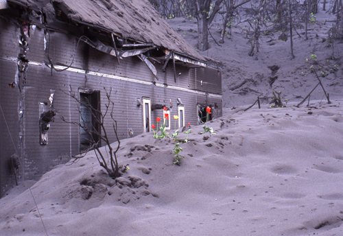 有珠2000年噴火の降灰上に色づいたチューリップは、復興への第一歩をすでに記していた。噴火活動は終息に向かい、住民帰宅がこの後始まった。(2000年6月撮影)