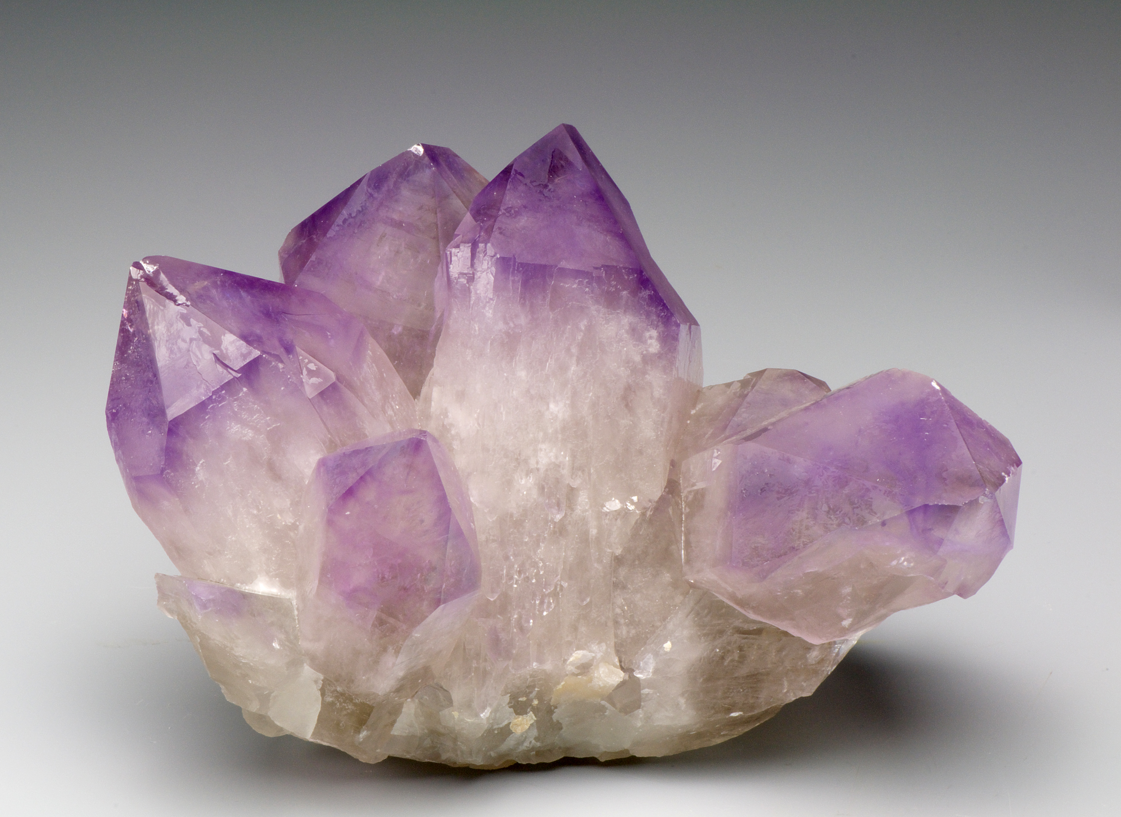 地質標本館の登録標本を借りて撮影しました。ボリビア産です。 結晶末端の濃い紫と、根本の白の色のコントラストがうまく撮れたと思います。